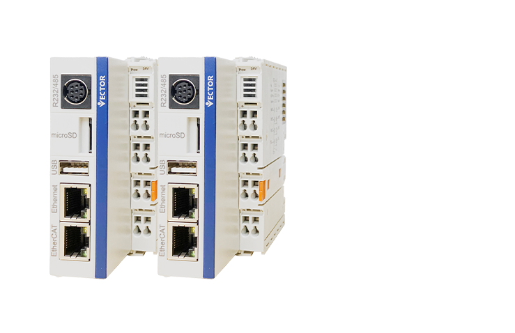 • 威科達(dá)VE系列運(yùn)動(dòng)控制器,搭載高性能CPU(4核1.6GHZ主頻)具有強(qiáng)大的運(yùn)算能力,基于linux系統(tǒng),采?CODESYS編程?具,?持IEC61131-3國際標(biāo)準(zhǔn)的6種編程語?的高性能運(yùn)動(dòng)控制器。標(biāo)配EtherCAT工業(yè)以太網(wǎng)實(shí)時(shí)總線,可以實(shí)現(xiàn)最大64軸同步控制。
